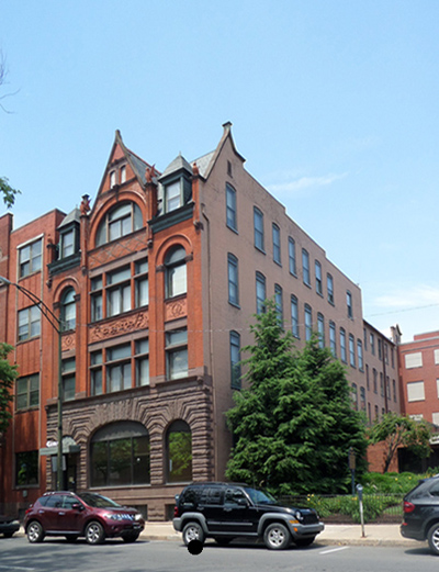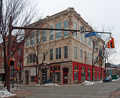 Scottish Rite Acacia Club, the original building shown to the far left, is 348 Market