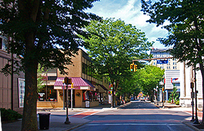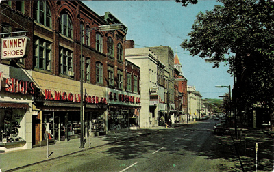 Fowlers Store, which appears to be closed in the picture, and Peil's (Dry Cleaning)