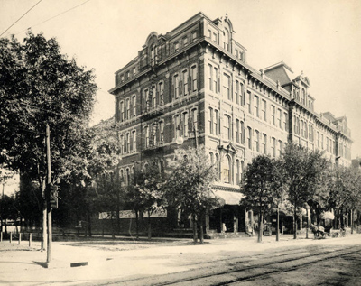 In 1886 A. Laedlein, Confectioner erected this building on the corner of Walnut